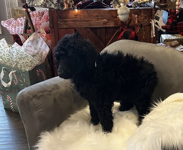 Meet our latest litter of Standard Poodle puppies. Born October 31, 2025, these AKC Registration eligible puppies will be ready for their new homes on December 26, 2025. We have 2 Males and 6 females available. Puppies are $1750 and can be reserved with a $500 Deposit. Price includes guarantee, first round of vaccinations, deworming and microchip. Deposit required to hold a specific puppy and is non-refundable but transferable to another puppy.